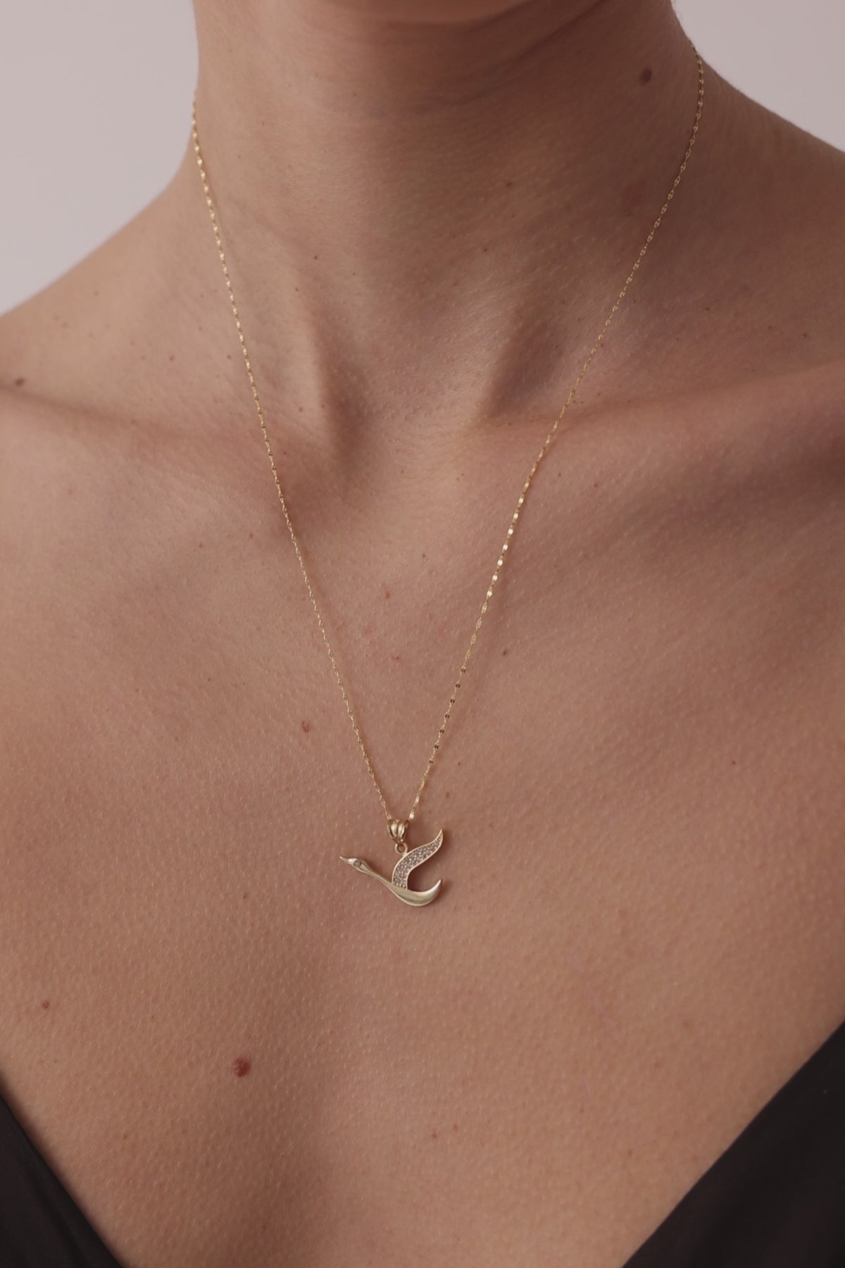 14 Ayar Altın Ayna Zincirli Taşlı Kuğu Kolye