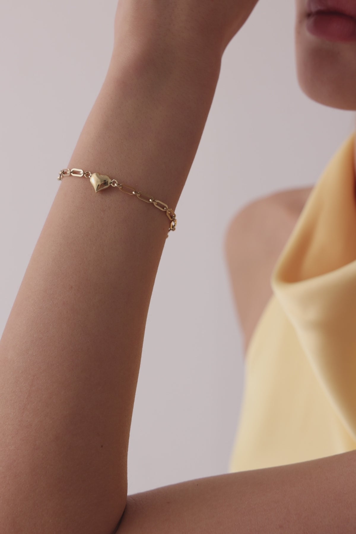 14 Ayar Altın Bombeli Minik Kalp Bileklik