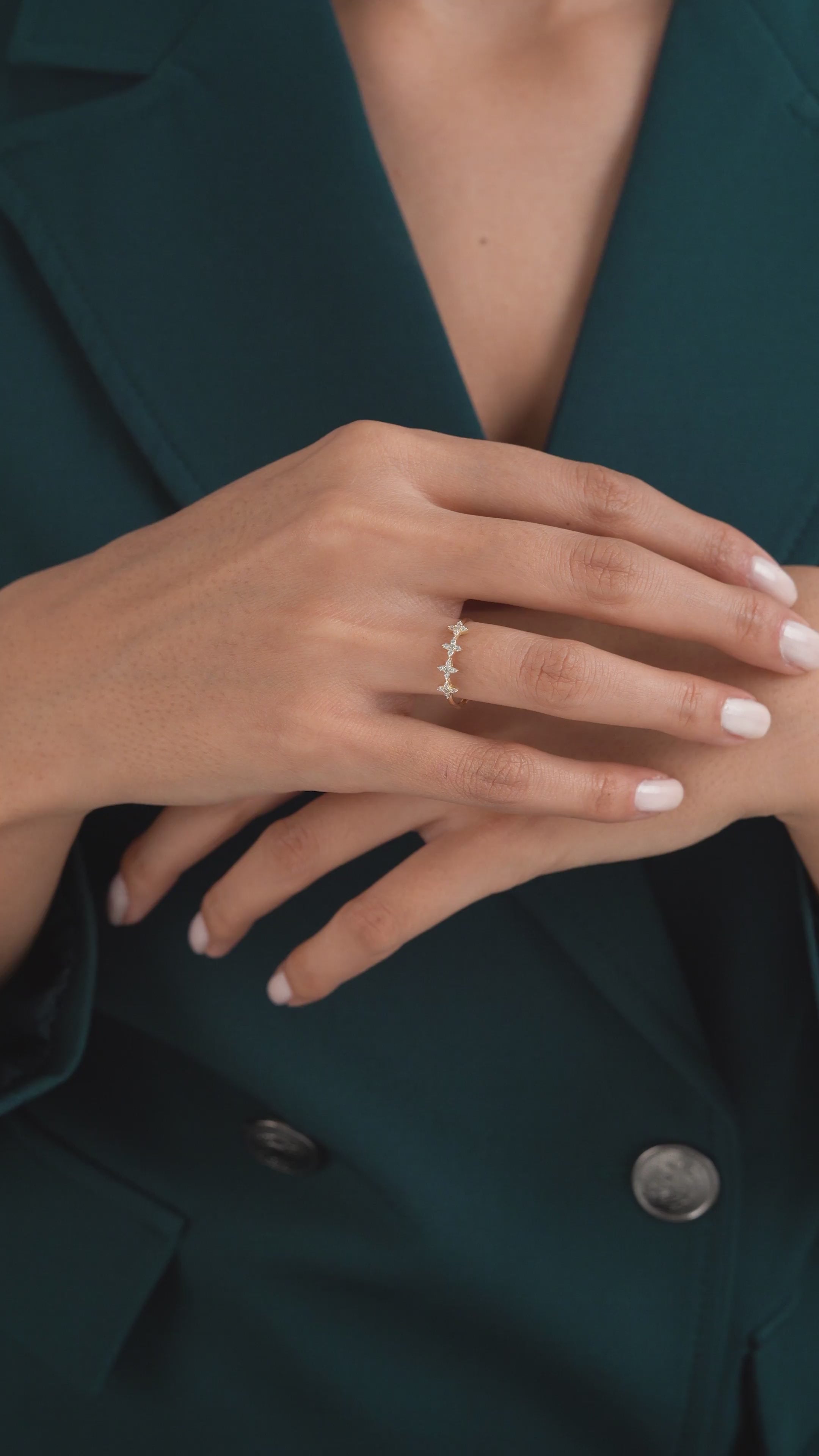 Doğanın zarafetinden ilham alınarak tasarlanan 14 Ayar Altın Çiçek Figürlü Mini Yüzük, ince detayları ve parlak taş süslemeleriyle parmaklarınızda zarif bir bahar havası yaratır. Her biri özenle yerleştirilmiş çiçek figürleriyle kadınsı bir ışıltı sunar.