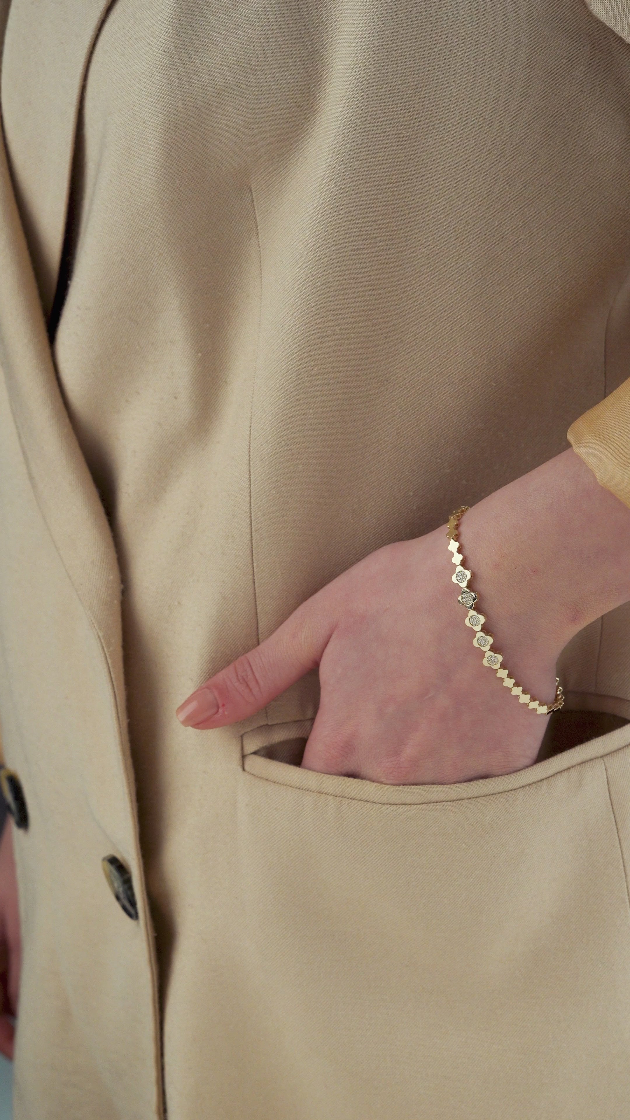 14 Ayar Altın Çiçek Motifleri Trend Bileklik