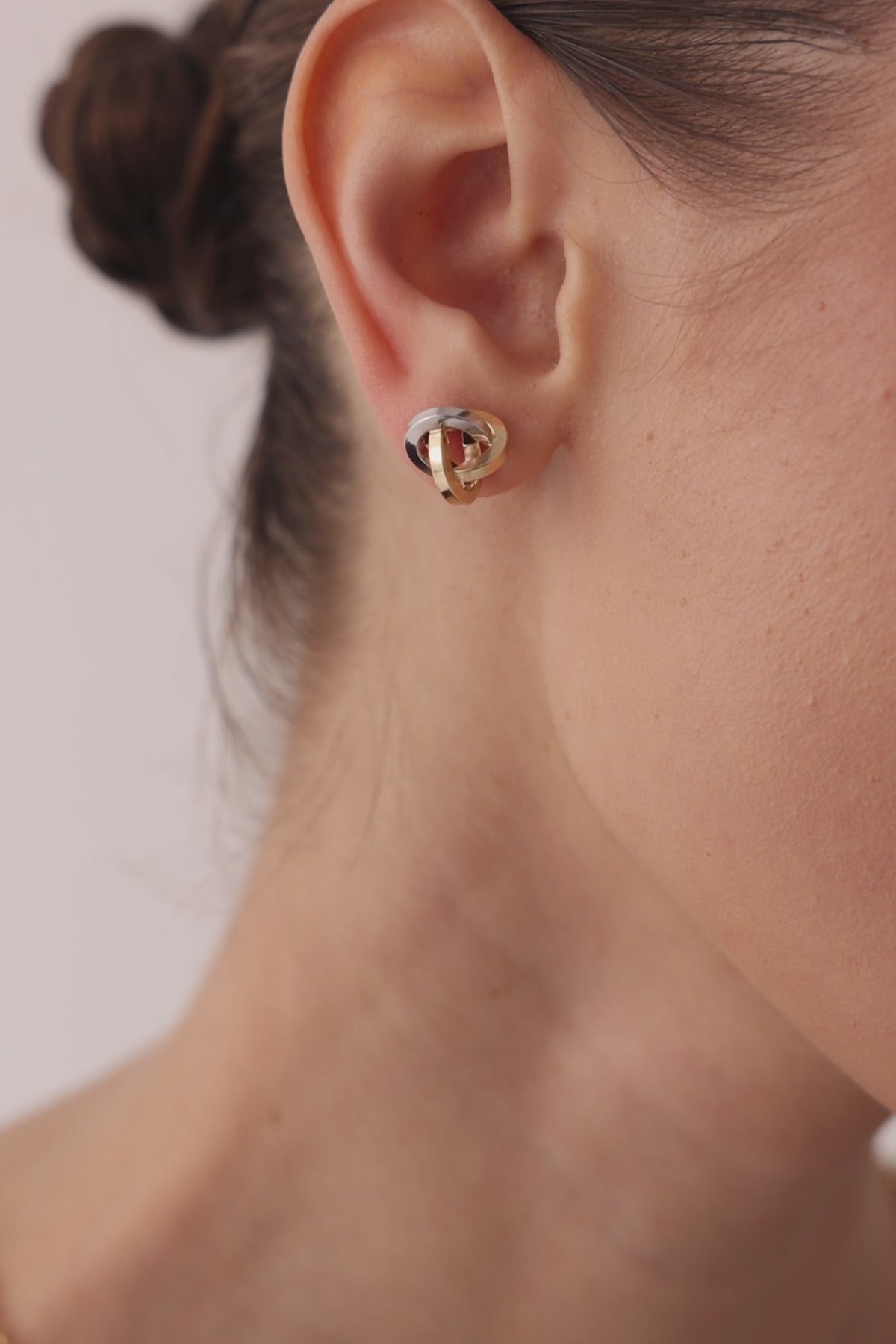 14 Ayar Altın Çift Renk Düğüm Küpe