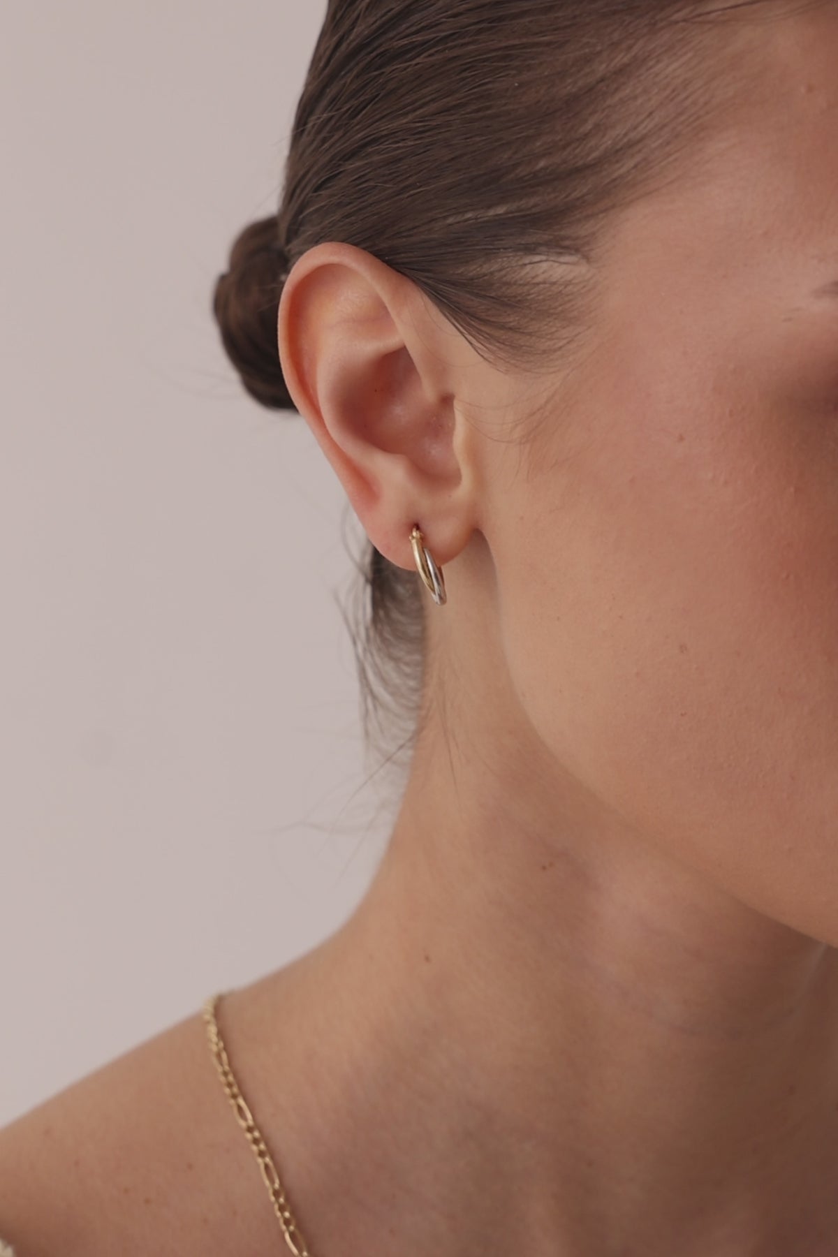 14 Ayar Altın Çift Renk Sarmal Halka Küpe 1,3 cm
