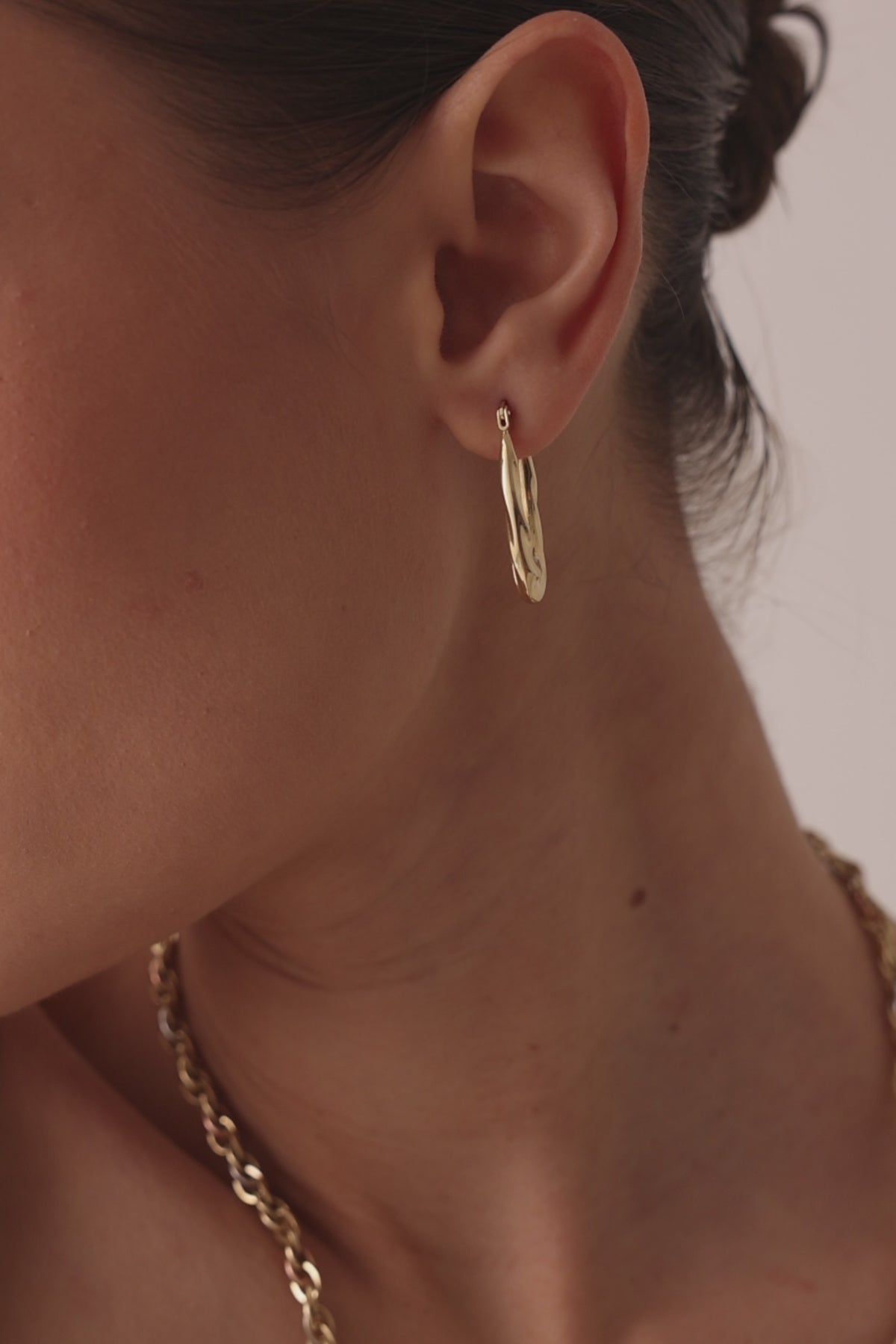 14 Ayar Altın Dalgalı Oval Küpe