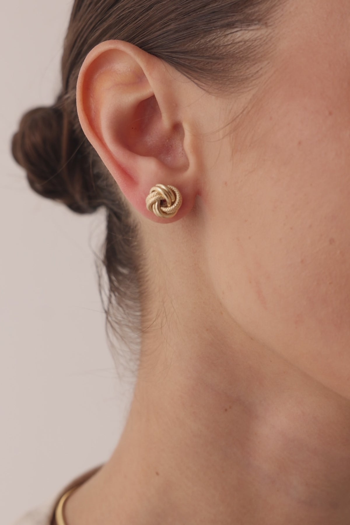 14 Ayar Altın Desenli Çift Düğüm Küpe