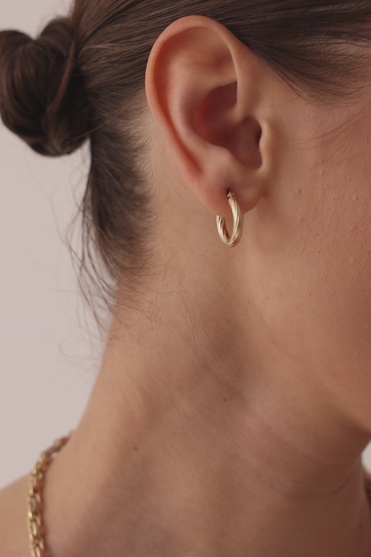14 Ayar Altın Desenli Halka Küpe 1,6 cm