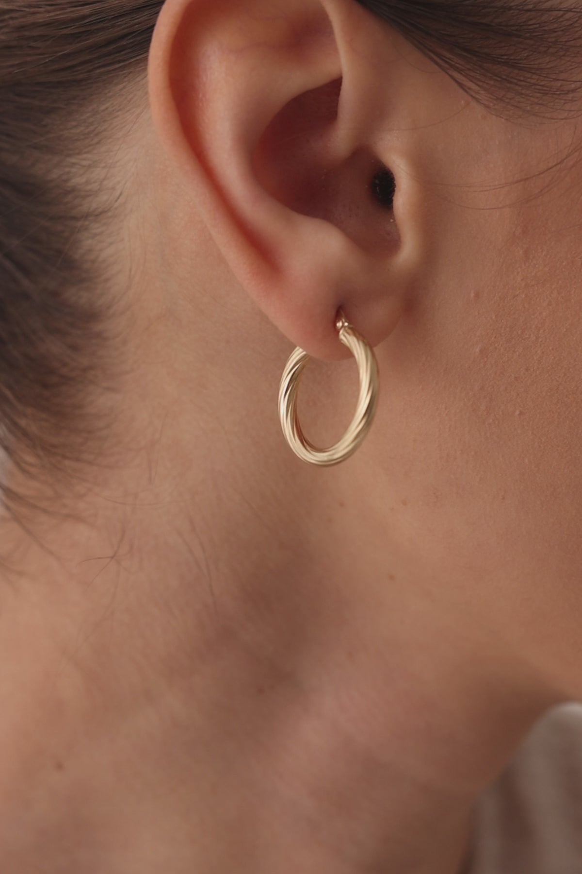14 Ayar Altın Desenli Halka Küpe 2,1 cm