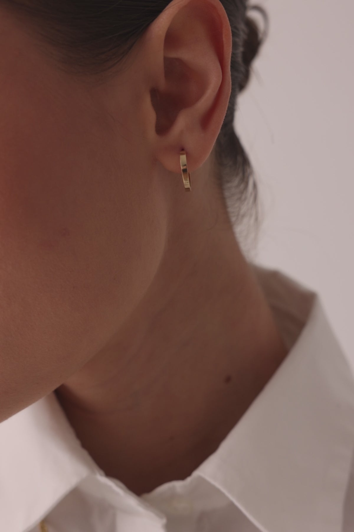 14 Ayar Altın Düz Halka Küpe Gizli Kilitli 1,5 cm