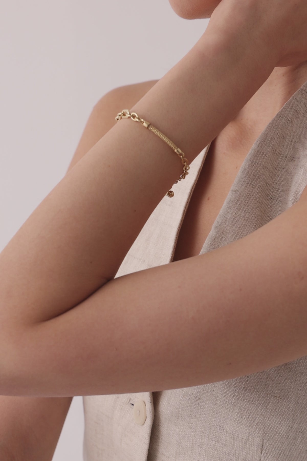 14 Ayar Altın Halka Birleşimli Örgü Bileklik