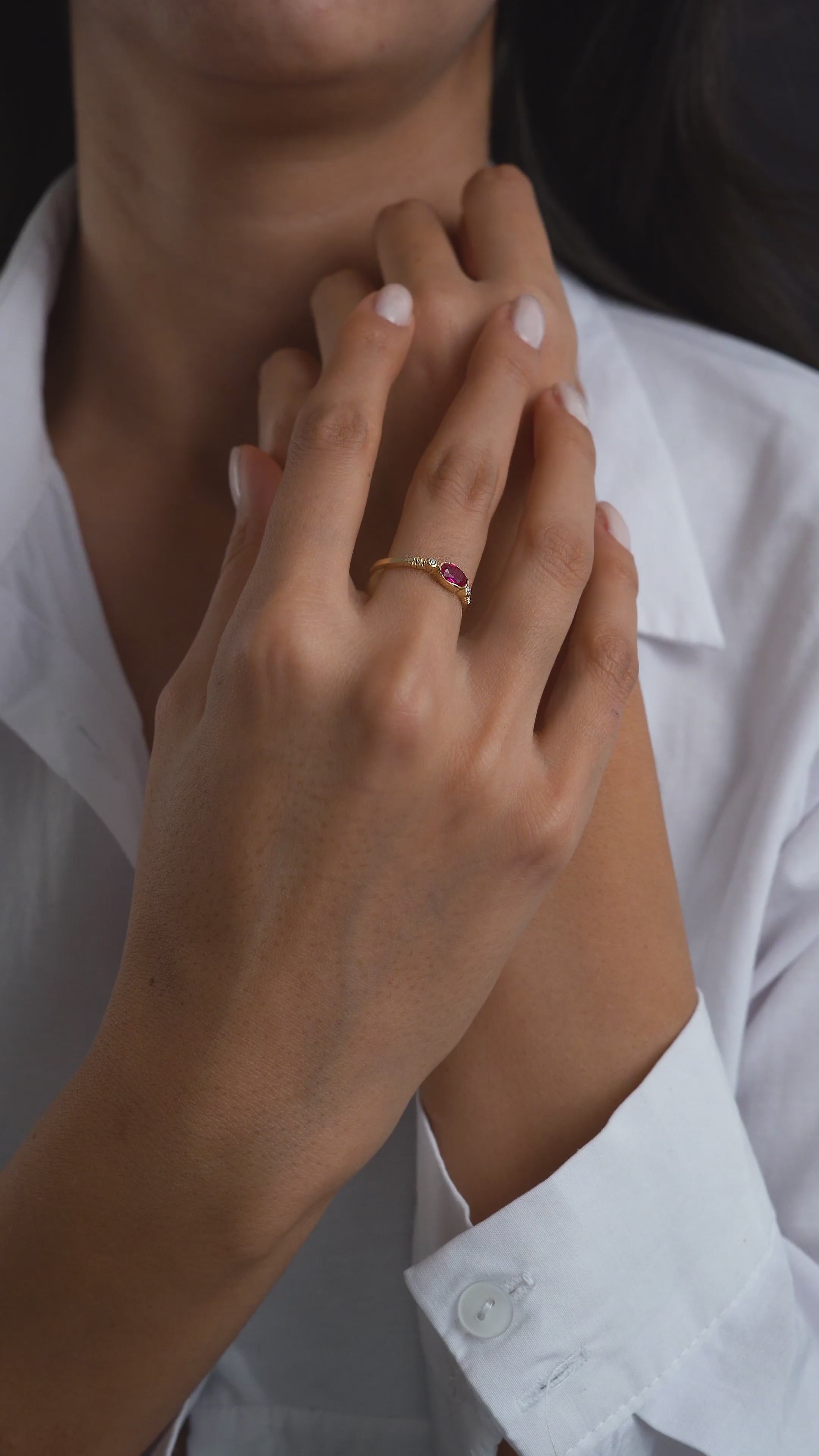 14 Ayar Altın Kırmızı Oval Taşlı Yüzük