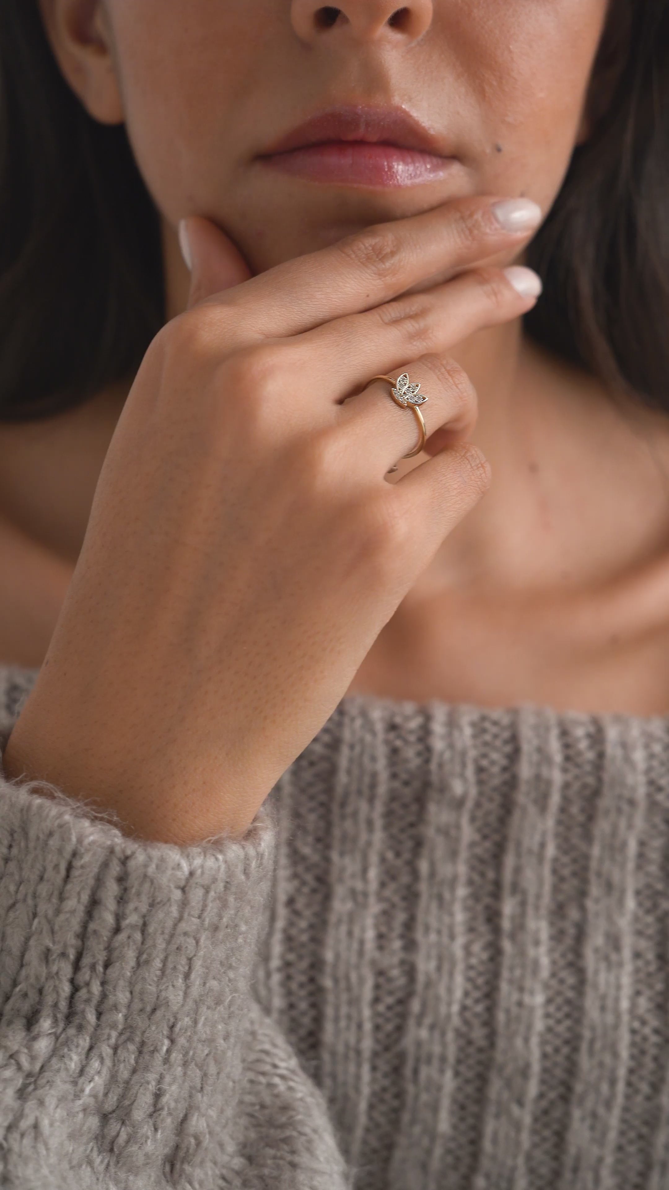 Lotus Mini Yüzük, sade ve zarif bir şıklık sunar. Tek başına minimal bir ifade yaratırken, diğer ince yüzüklerle kombinlendiğinde katmanlı ve modern bir stil oluşturur. Her ortamda parmağınızın zarafetini vurgular.
