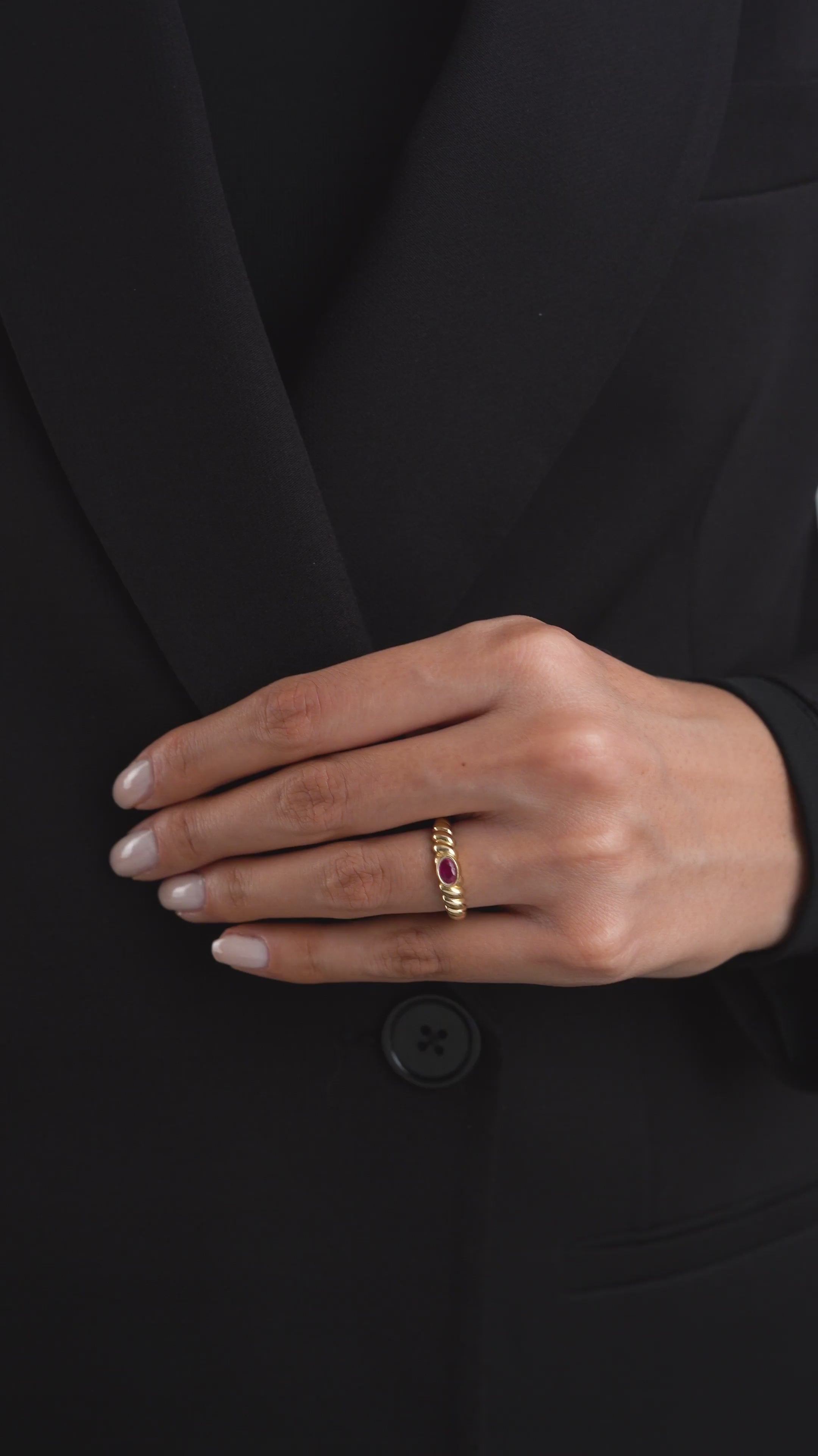 14 Ayar Altın Oval Mini Yüzük, sade ama iddialı bir duruşa sahip olmak isteyen kadınlar için mükemmel bir seçimdir. Tek başına asil bir görünüm sunarken, düz altın veya taşsız yüzüklerle kombinlendiğinde modern bir tarz yaratır. Canlı rengiyle hem gündüz hem gece şıklığınızı tamamlayan zamansız bir mücevherdir.