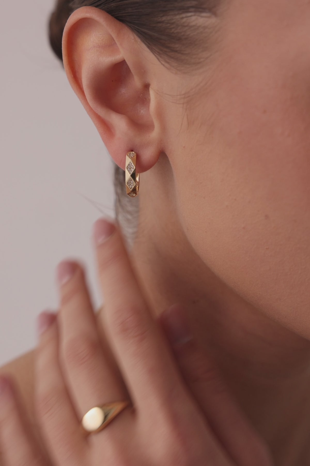 14 Ayar Altın Taşlı Baklava Dilim Halka Küpe 1,7 cm