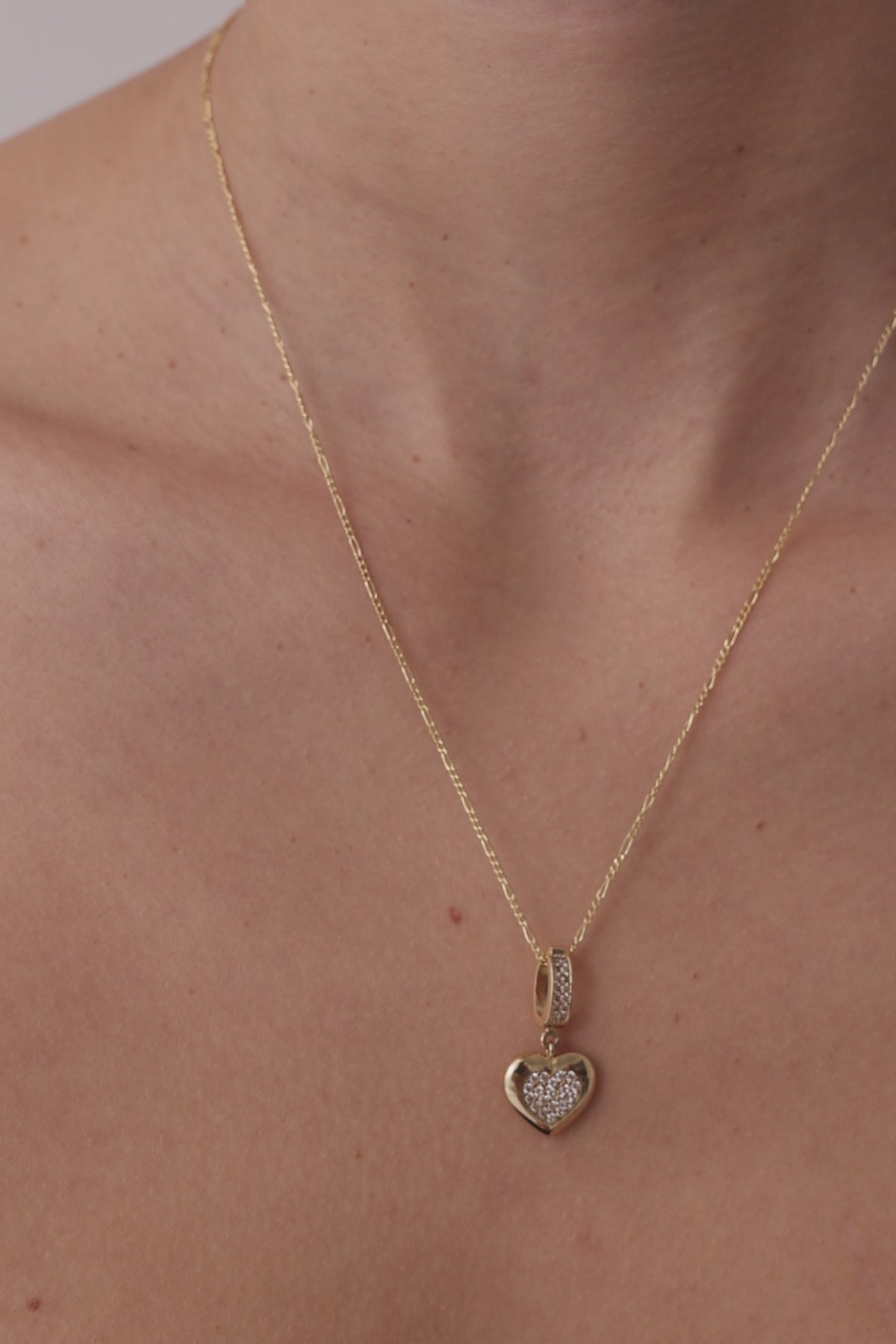 14 Ayar Altın Taşlı Bombeli Kalpli Kolye