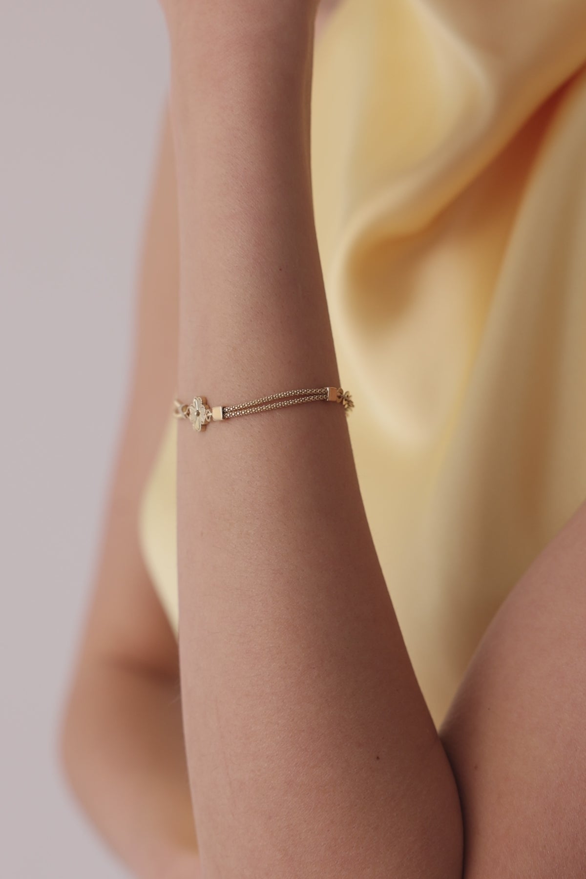 14 Ayar Altın Taşlı Kalemli Yonca Bileklik