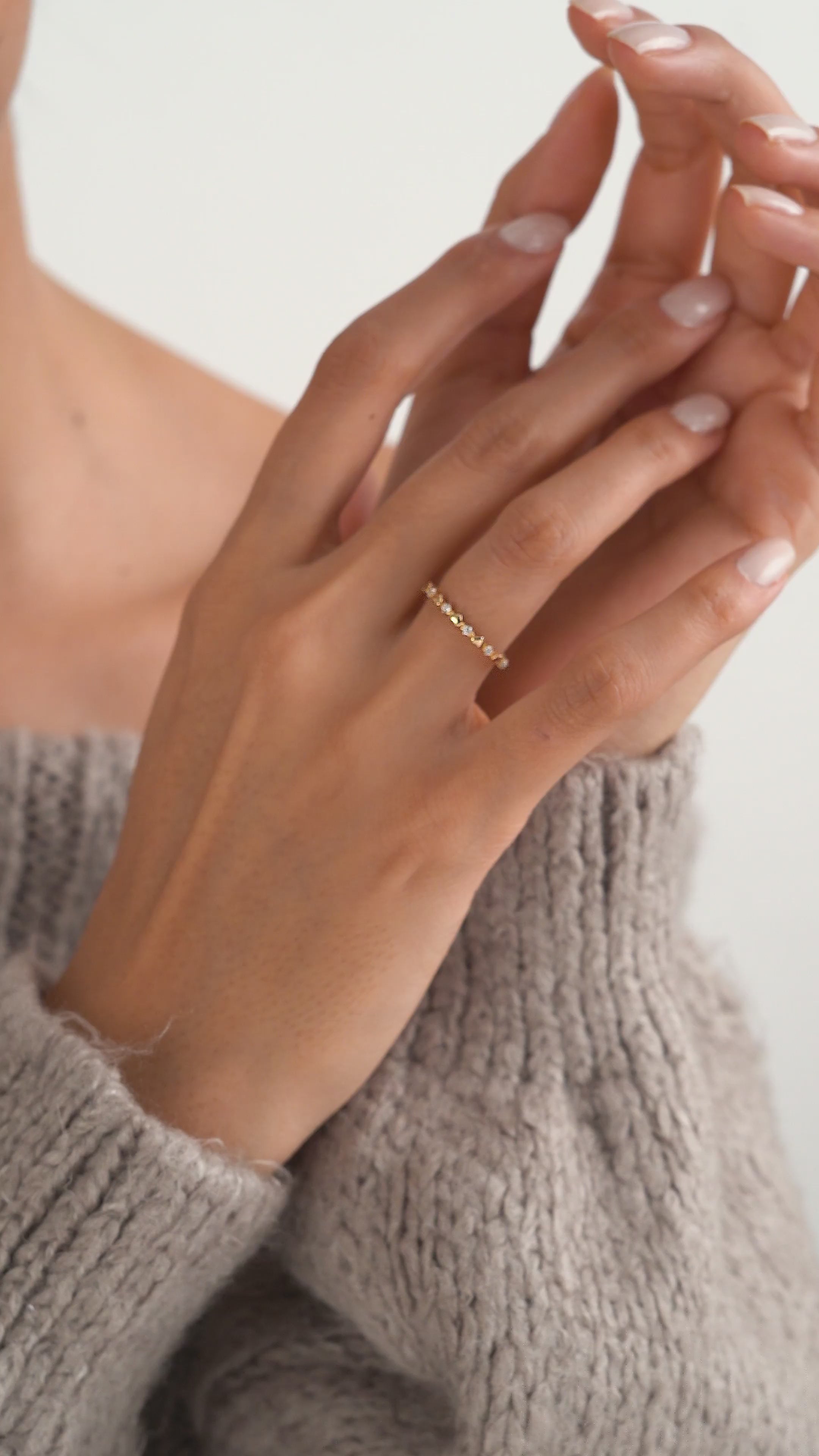 Aşkın zarafetle buluştuğu bu özel tasarım, parmaklarınızda romantizmin en zarif halini yansıtır. Işıltılı taş detayıyla kalp figürü, sevginin sembolünü 14 ayar altının sıcak dokusuyla bir araya getirir.