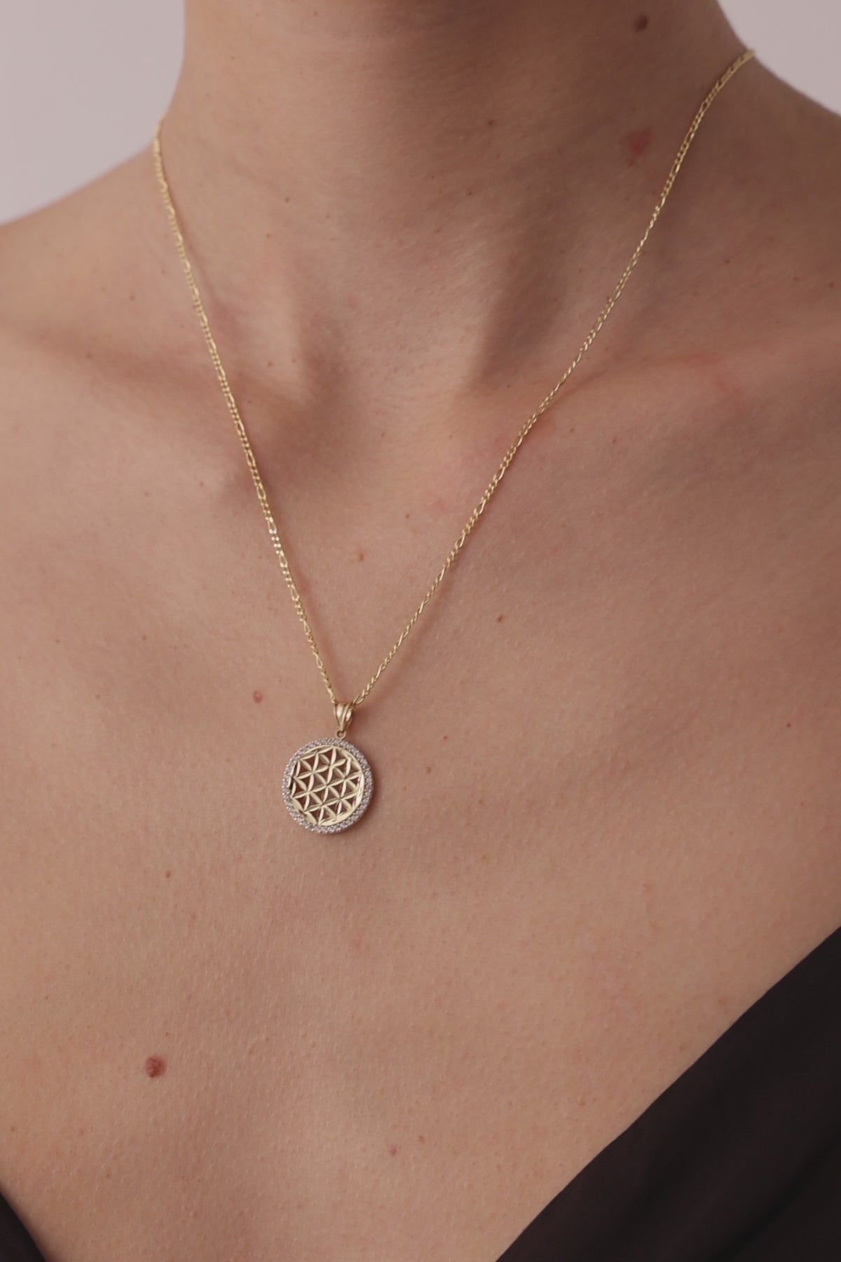14 Ayar Altın Taşlı Yaşam Çiçeği Kolyesi