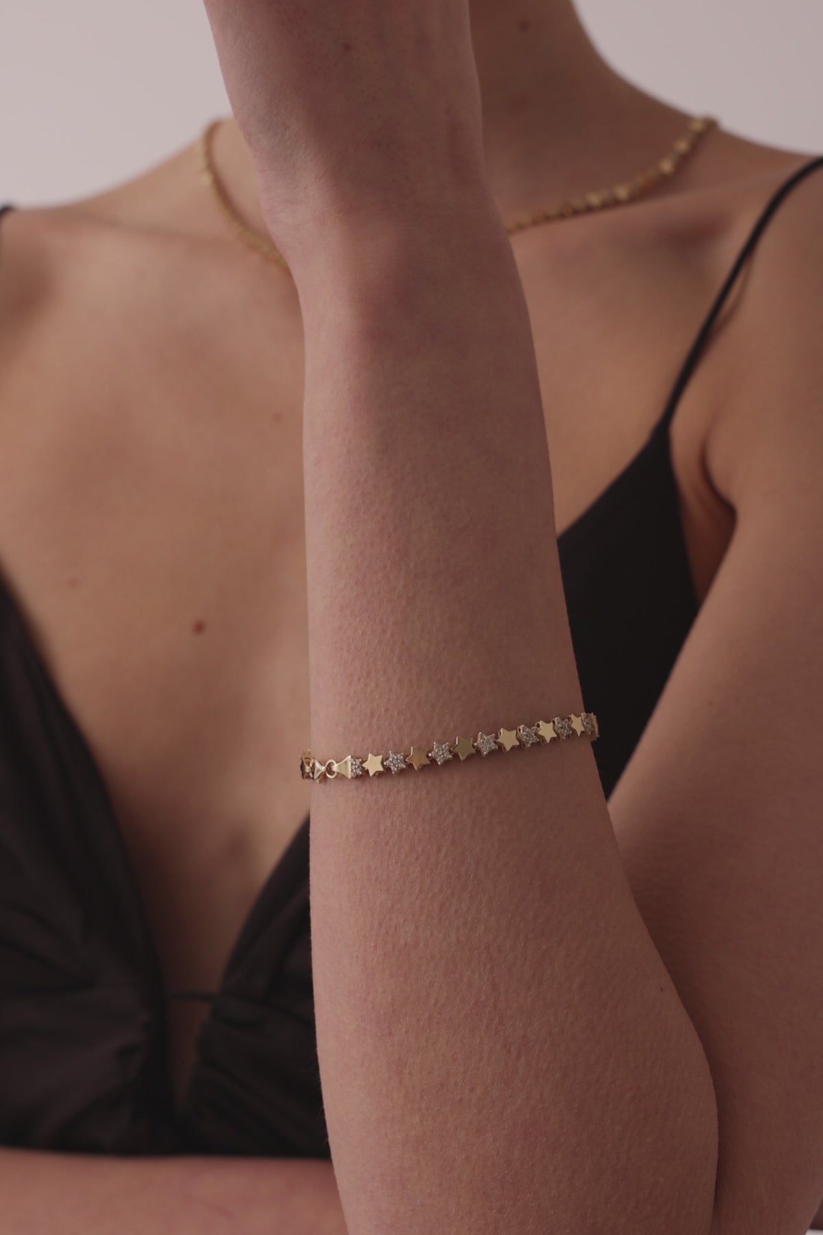 14 Ayar Altın Taşlı Yıldız Sarmalı Bileklik