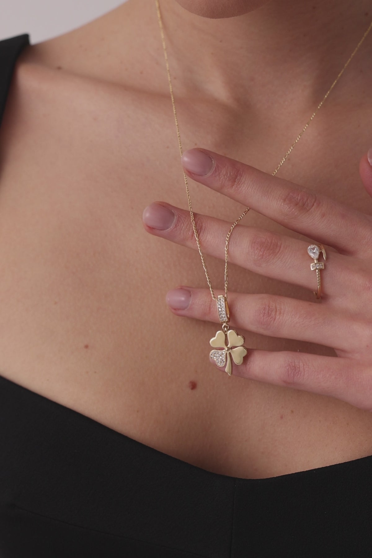 14 Ayar Altın Taşlı Yonca Kolye