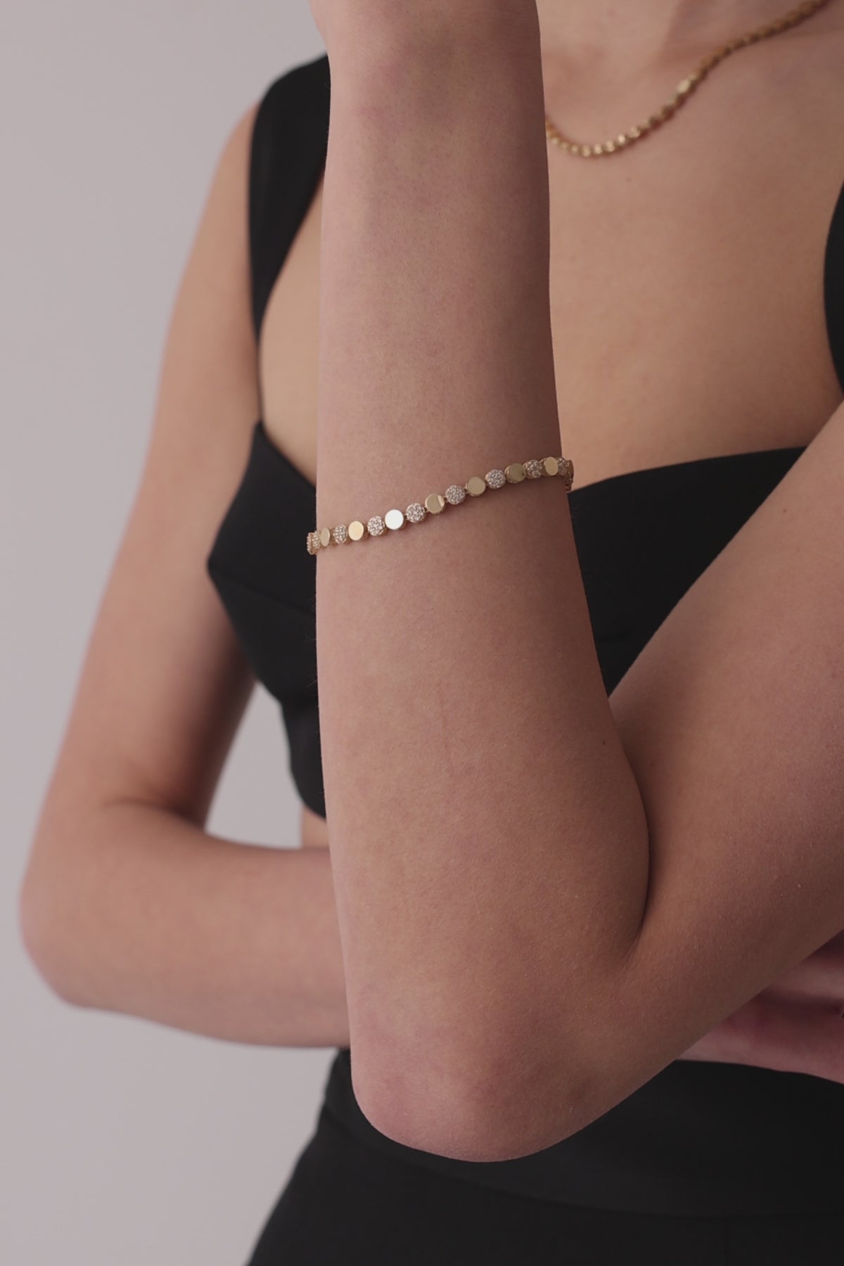 14 Ayar Altın Taşlı Yuvarlak Figürlü Bileklik