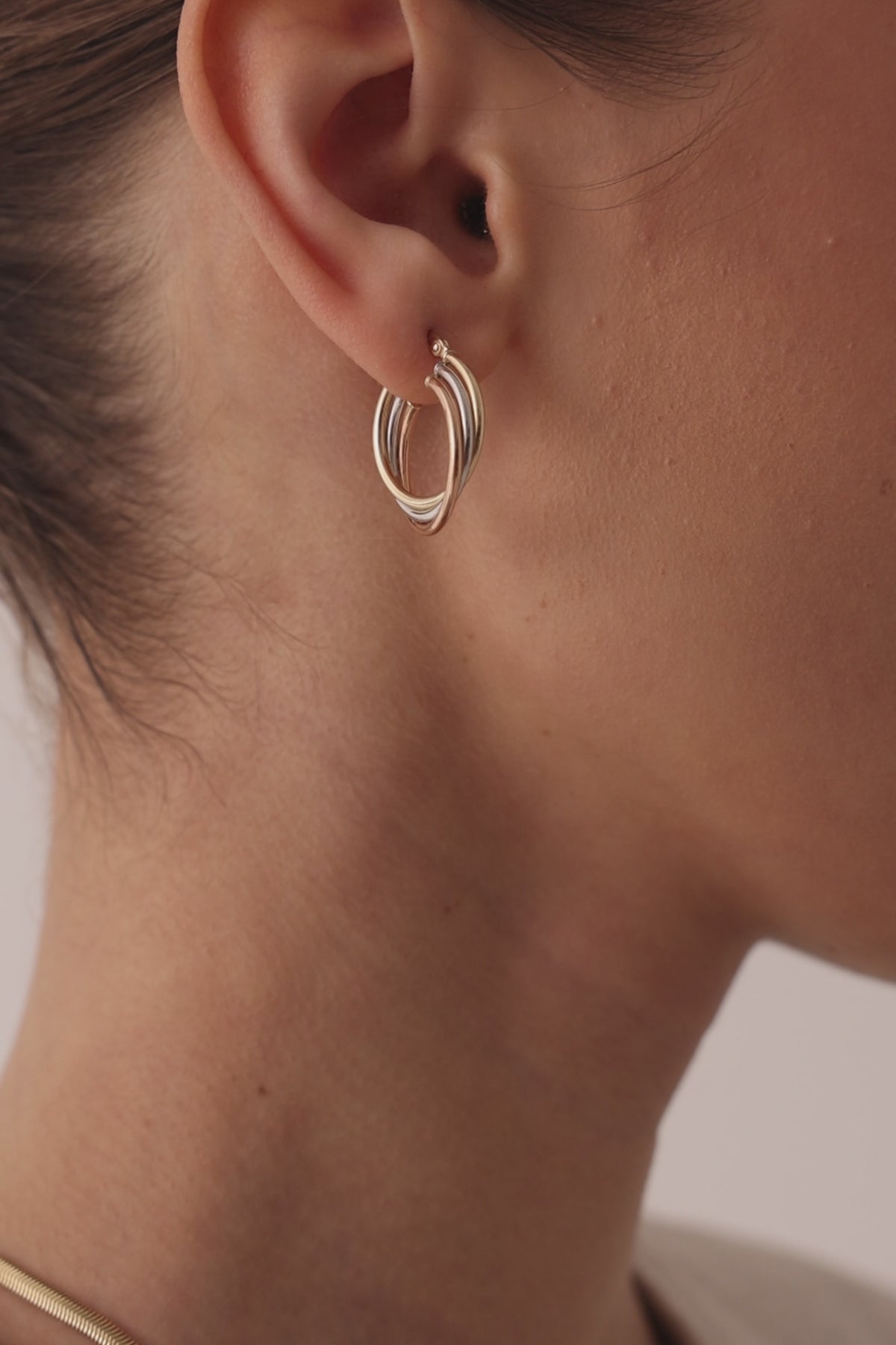 14 Ayar Altın Üç Renk Sarmal Halkalı Küpe