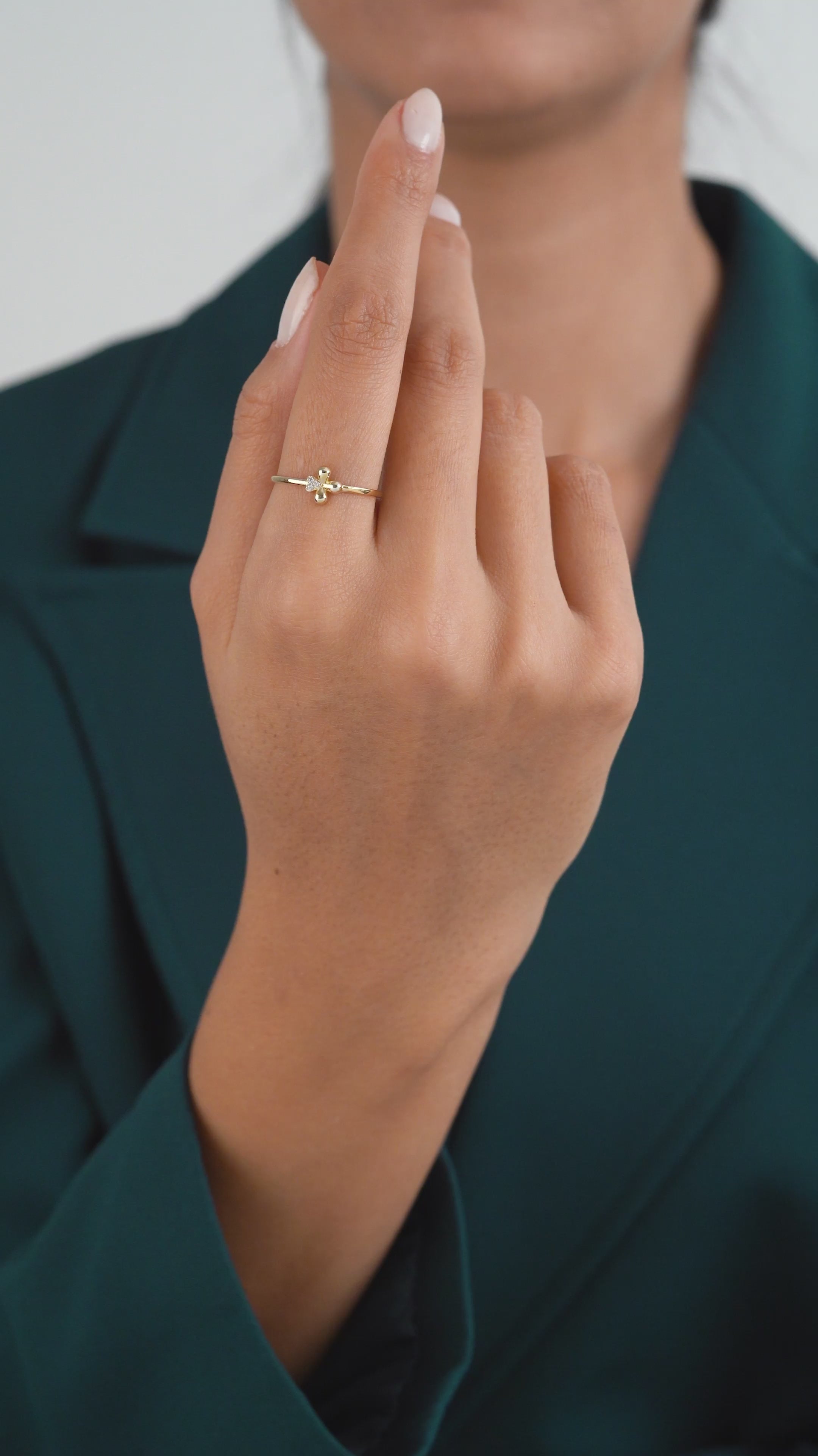 Şansın ve zarafetin sembolü olarak tasarlanan 14 Ayar Altın Yonca Mini Yüzük, sade ama etkileyici formuyla zarafeti parmaklarınıza taşır. Parlayan taş detayıyla zenginleştirilen bu özel tasarım, minimal dokusuyla her stile zarif bir dokunuş katar.