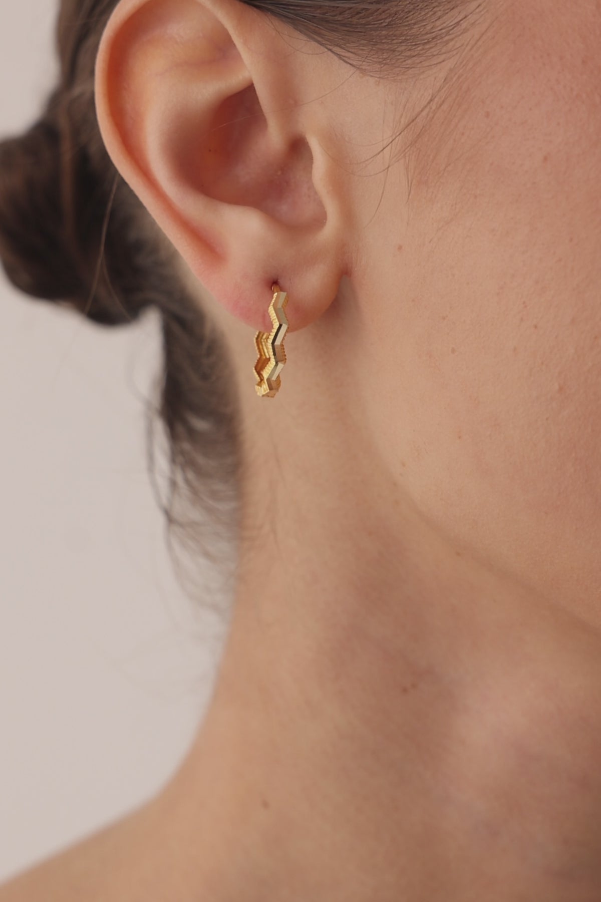14 Ayar Altın Zikzak Ajda Halka Küpe